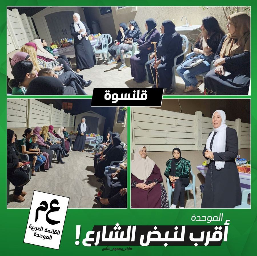 حلقة انتخابية نسائية واسعة دعمًا وتأييدًا للموحدة ونهجها الأقرب لنبض الشارع، في قلنسوة في بيت السّيّد طه سلامة بمشاركة النائبة إيمان خطيب ياسين.