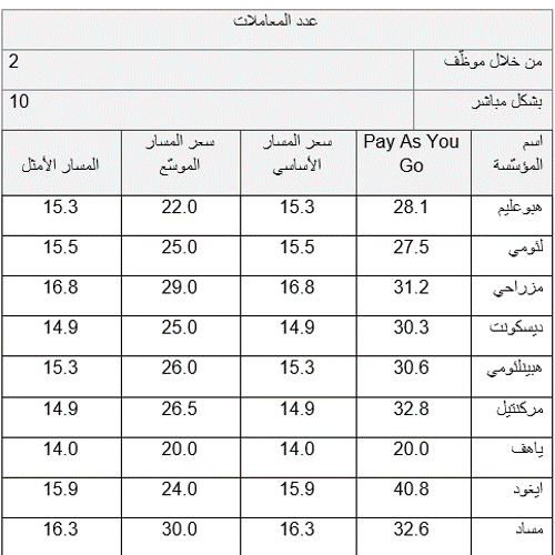 سيبقى هذا المسار كمسار يمكن للزبون اختيار الانضمام إليه طواعية، وهو غير مشمول في الحساب الموضح أعلاه.