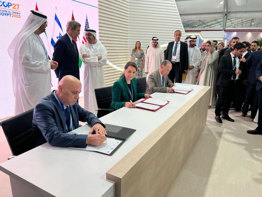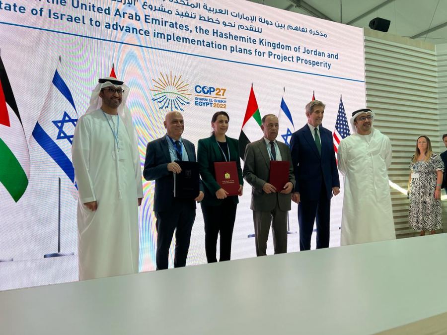 كنوز نت - سوسن سرور -وقع وزير التعاون الإقليمي عيساوي فريج اليوم الثلاثاء، على مذكرة تفاهم مع وزير المياه الأردني محمد النجار ووزيرة المناخ في الإمارات مريم المهيري، وذلك على هامش مؤتمر المناخ المنعقد في شرم الشيخ.