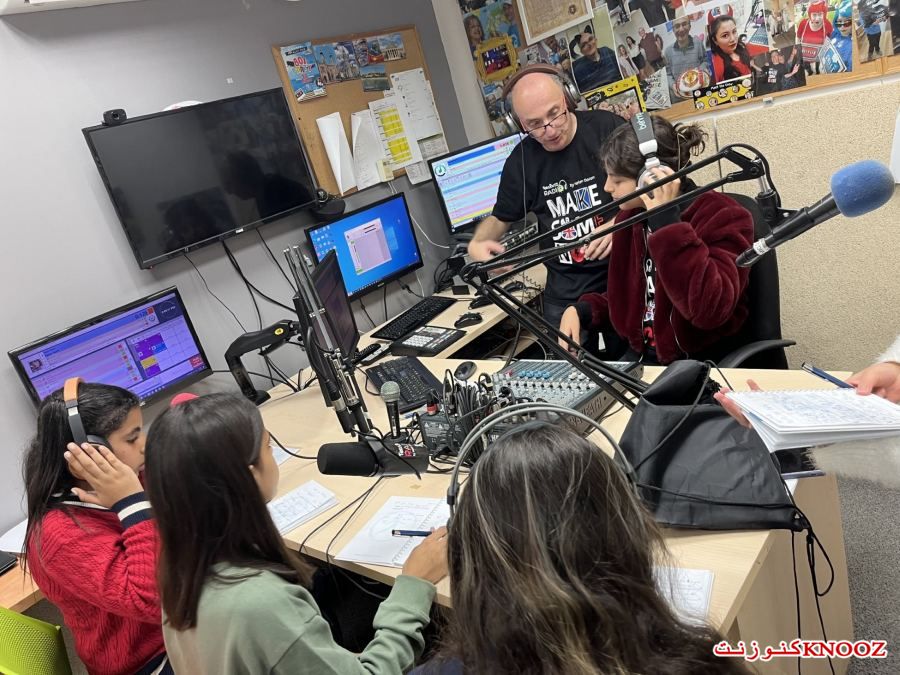 حضر الطلاب ، الذين تتراوح أعمارهم بين 11 و 16 عامًا ، إلى ورشة عمل إذاعية دولية بقيادة ريتشارد فريدمان - مدير المحطة (المذيع السابق ومدير الموسيقى في إذاعة "كول ريجاع ").