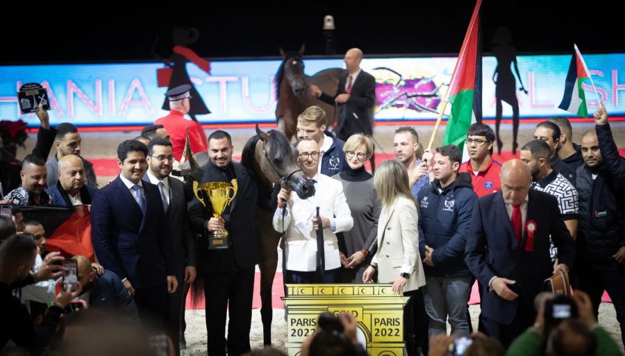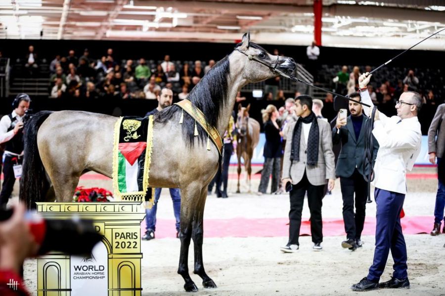كنوز نت - اسماعيل حاج يحيى - كعادته مربط الشيخ يخطف الأضواء والنجاح حليفه بالحصول على الجائزة الذهبية في بطولة العالم للخيول العربية الأصيلة في العاصمة الفرنسية باريس، هذه المرة بفوز المهرة "عائشة الشيخ" الفلسطينية عن أجمل رأس خيل عربي لعام 2022 والتي حازت على أعلى معدل ب 93.57 نقطة لفئة المهرات.