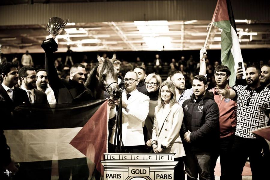 سوبر هاترك فلسطيني ، المهرة "عائشة الشيخ" لمالكها ابن الناصرة رجل الاعمال محمد الشيخ سليمان تقود بلدها فلسطين للتتويج ببطولة العالم لجمال الخيول العربية الأصيلة في باريس للمرة الرابعة على التوالي.