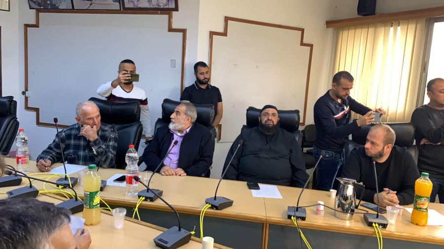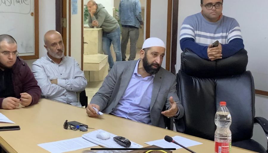 الجلسة عُقدت برئاسة المحامي مأمون عبد الحي رئيس بلدية الطيرة مع ممثلي ادارته والعديد من اعضاء بلدية الطيرة بالاضافة الى عدد من أئمة المساجد.