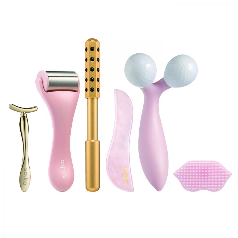 وقت الاسترخاء مع تدليك بشرة الوجه: أدى تقوية اتجاه WELLBEING إلى دفع العديد من المستهلكين إلى الاستثمار أكثر في روتين العناية بالبشرة ، ووضع المستحضرات على بشرتهم أثناء التدليك كجزء من الاسترخاء والعلاج الإضافي لبشرة الوجه. في العام الماضي، كنا على دراية بالزيادة المستمرة في الطلب على ملحقات تدليك الوجه الخاصة بعلامة SO.KO التجارية ، وكنتيجة مباشرة لذلك ، تقوم العلامة التجارية بتوسيع نطاق الملحقات وإطلاق أجهزة إضافية لتدليك الوجه. الجسم والوجه. من بين الإكسسوارات الجديدة يمكنك العثور على الأداة الذهبية لتدليك الوجه مع التركيز على تدليك منطقة العين، حجر مصنوع من الكوارتز الوردي مصمم وفقًا لهيكل عظام الوجنتين، ولفافة للجسم برأسين تساعد على تخفيف التوتر، و أسطوانة تدليك ذهبية مرصعة بأحجار محفزة للجسم والوجه. ومن الإضافات في السلسلة أسطوانة الثلج لتبريد بشرة الوجه وتنشيط الدم وفرشاة التقشير للشفاه التي تساعد في إزالة خلايا الجلد الميتة وإعطاء الشفاه مظهراً أنعم. وُلدت العلامة التجارية الكورية SO.KO للعناية بالبشرة منذ ما يقرب من ثلاث سنوات ونصف ، وتم تحديدها بخط بسيط باللونين الوردي والأبيض. تُباع منتجات العناية بالبشرة مثل الأمصال ومنصات العين وأقنعة الوجه والشفاه وغيرها من الملحقات تحت العلامة التجارية.
