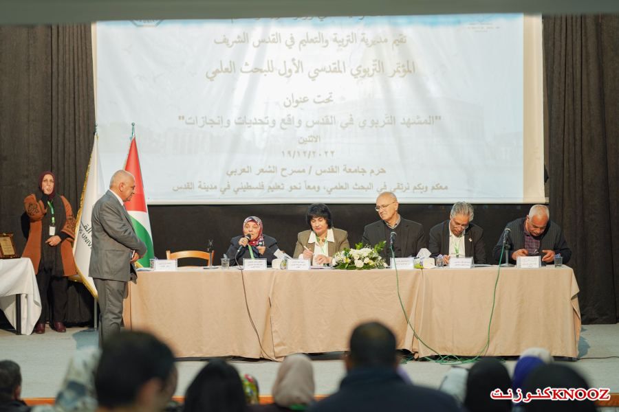 كنوز نت - ياسمين الخطيب - نظمت مديرية التربية والتعليم في القدس ممثلة بقسم التعليم المدرسي بالشراكة مع جامعة القدس ووزارة التربية والتعليم، المؤتمر التربوي المقدسي الأول للبحث العلمي "المشهد التّربوي في القدس واقع وتحديات وإنجازات"، بحضور مدير عام التربية والتعليم الأستاذ سمير جبريل، ومدير عام وحدة شؤون القدس الأستاذة ديما السمان، ومدراء مدارس ومشرفين وباحثين وأساتذة، ومجلس أولياء أمور طلبة مدارس القدس، وأكاديميين وإداريين من الجامعة.