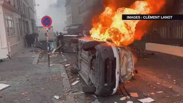 خلال الاشتباكات انقلبت عدة سيارات وأضرمت النيران في مركبة واحدة على الأقل، وتعرضت نوافذ متاجر لأضرار وأُشعلت حرائق صغيرة بالقرب من ساحة الجمهورية، المكان التقليدي للمظاهرات في المدينة.