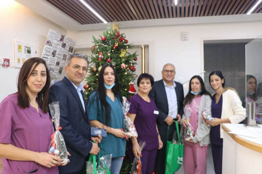 كنوز نت - يواصل بنك مركنتيل نشاطاته ومساهماته في المجتمع العربي. وعلى أعتاب السنة الجديدة وبمناسبة الأعياد المجيدة، انطلق السيد عوني أبو سالم، مدير منطقة الناصرة في بنك مركنتيل ومساعد المدير العام، ومدير فرع الناصرة، السيد طارق عبدو، يرافقهما موظّفون آخرون في زيارة إلى مستشفيات الناصرة الثلاثة، حيث التقوا مع إداراتها وقاموا بتوزيع الهدايا الرمزية على الطواقم الطبية والمرضى.