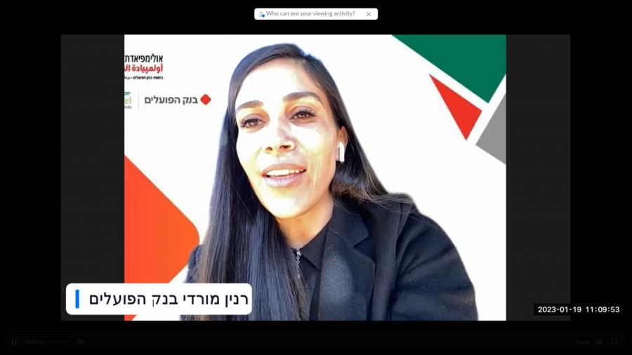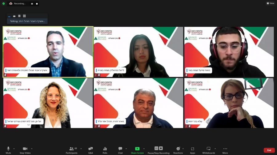 ودعيا السيدة رنين مرضي، مديرة المشاريع للمجتمع العربي في بنك هبوعليم للتحدث من قبل البنك، قائلة: نرحب بكم بتأثر كبير فأنتم شبيبتنا وأملنا ومستقبلنا، بهذه المبادرة التي تتلقون بها أدوات شخصية لحياة مهنية، ما نزرعه بكم اليوم نحصده منكم غدا، باسم البنك نؤكد أن هذا الدعم لهذا المشروع يعتبر احدى اهم المشاريع، مستمرون بالاستثمار بشبيتنا من أجيالكم، فنحن في إدارة البنك وفي فروعنا 20 في المجتمع العربي من كافة الطواقم أبوابنا مفتوحة لكم .