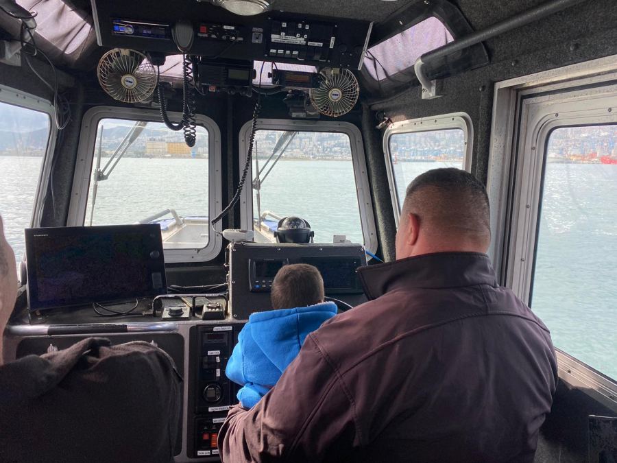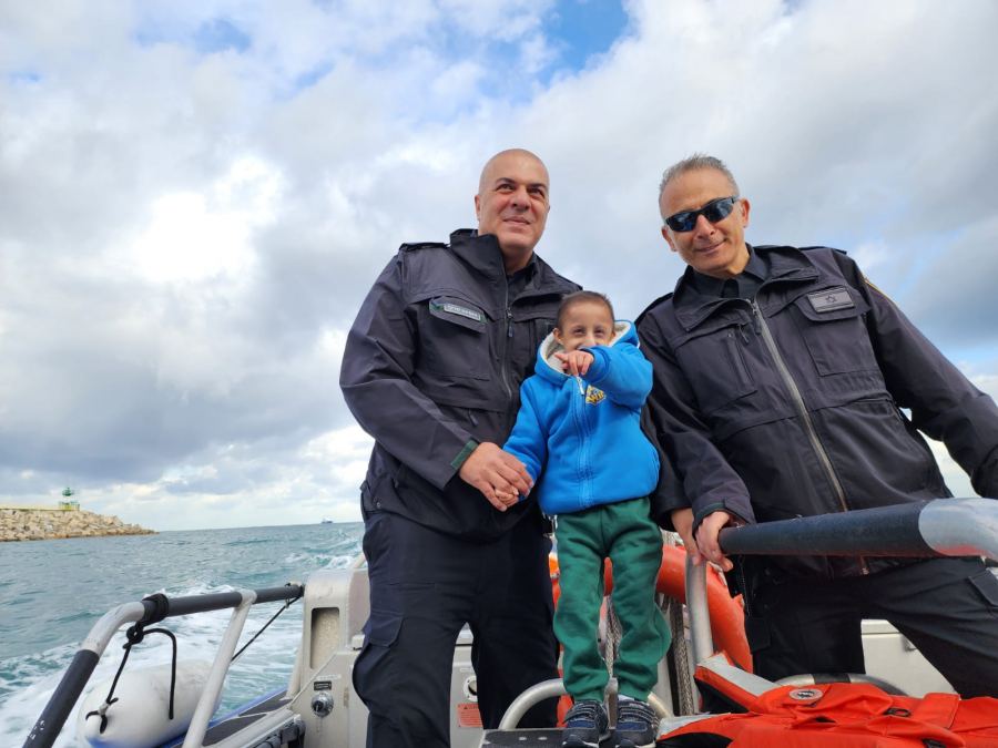 نقلت مركبة دورية تحقيق الأمنيات الطفل وابيه ضابط الشرطة حسام شروف، بعد ان ارتدى الزي الرسمي لشرطة إسرائيل, الى الوحدة البحرية لواء الساحل لشرطة اسرائيل، ليخرج مع ابيه ورجال الشرطة البحرية في جولة بحرية من ميناء حيفا.