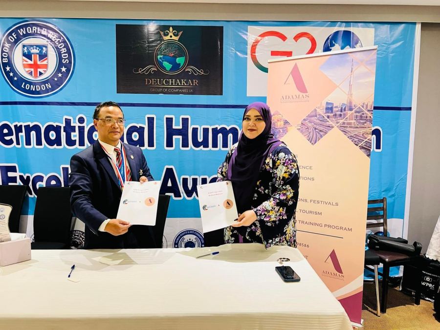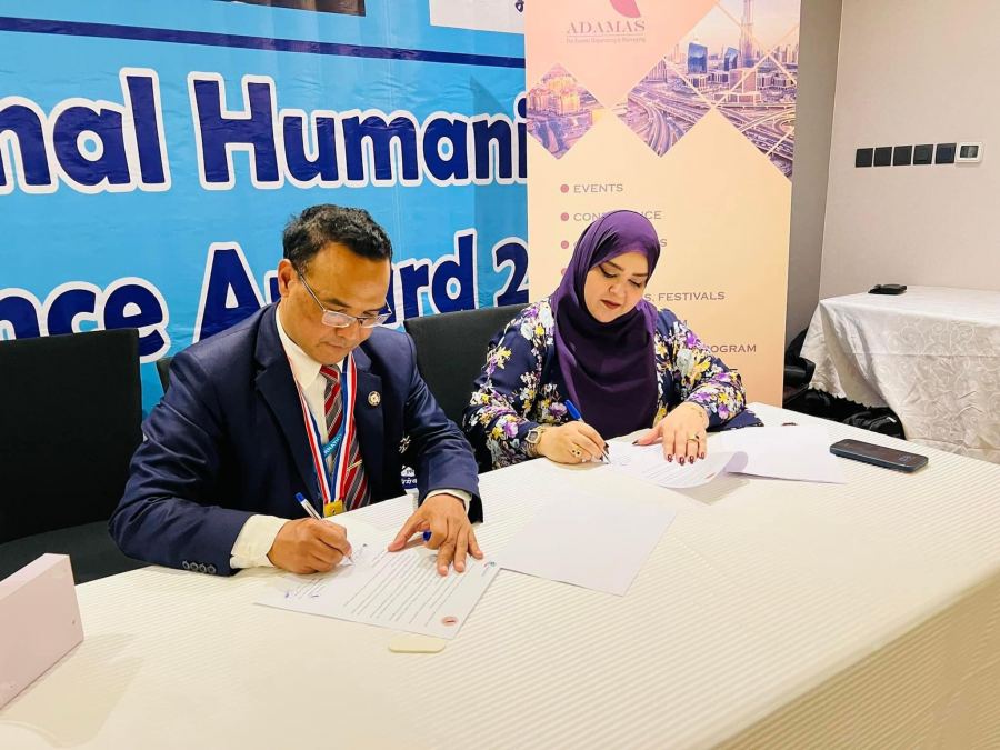 وتشرفت بتلبية الدعوة الكريمة للحضور والتكريم بجائزة التميز الإنسانية الدولية لعام 2023 في هذا الحفل المميز ،وبعد الانتهاء من مراسم الحفل تم توقيع مذكرة تفاهم وتعاون بين شركة اداماس لتنظيم وادارة الفعاليات ADAMAS FOR EVENT ORGINIZING & MANAGEMENT