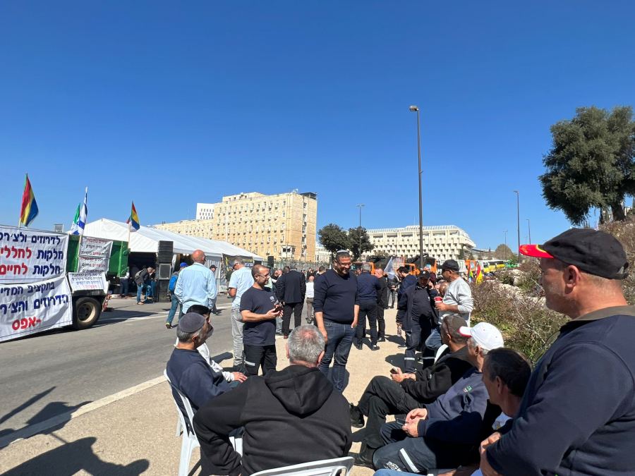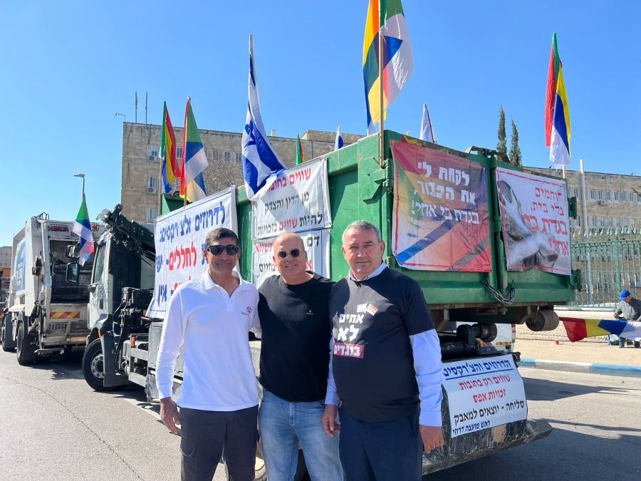 هذاو أغلقت مئات شاحنات جمع النفايات وحافلات السفريات الصفراء للمجالس الإقليمية صباح اليوم الأحد، الطريق المؤدي الى مكتب رئيس الحكومة بالقدس ضمن الخطوات الإحتجاجية التي أعلن مركز السلطات المحلية رداً على تجاهل الحكومة وعلى رأسها وزارة المالية عريضة من المطالب التي تم تقديمها تتعلق بتخصيص ميزانيات للتطوير وتحويل الميزانيات التي تم إقرارها سابقًا.كما تظاهر أمام مكتب رئيس الحكومة عدد من رؤساء السلطات المحلية العربية واليهودية بمشاركة مستخدمين من مختلف الأقسام في هذه السلطات حيث تم رفع شعارات "ميزانيات للسلطات المحلية يساوي ميزانيات للمواطنين"،"إنقطع نفسنا لن نستطيع تحمل ذلك أكثر 258 سلطة محلية تطالب بميزانيات الآن"،.