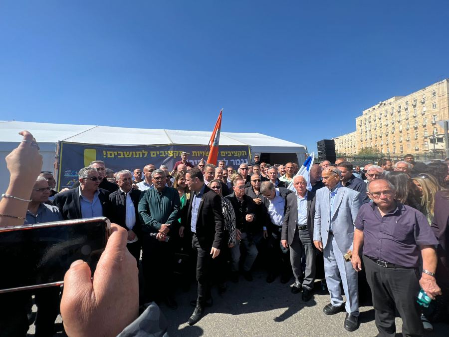 وأقيمت خيمة إعتصام للرؤساء في المكان. وقال حاييم بيباس رئيس مركز السلطات المحلية خلال كلمته في خيمة الإعتصام:"الحكومة وعدت بمحاربة غلاء المعيشة وبنفس الوقت تُسقط علينا ضرائب كثيرة، ،وعندما أنظر الى قضايا اللُب مثل قضية التربية والتعليم صحيح أن موضوع أجور المساعدات في رياض الأطفال في طريقه للحل ولكن بنفس الوقت هناك قضية الغرف الدراسية التي تم إخراجها من الميزانية وهناك نقص حاد في الغرف الدراسية والتي يجب بناؤها بشكل فوري في المجتمع العربي والدرزي والشركسي،عدم صياغة إتفاق أجور للمعلمين الذين يهتمون بتعليم أولادنا،تقليص هبات الموازنة وبالتالي هي مس بالسلطات المحلية في الضواحي.