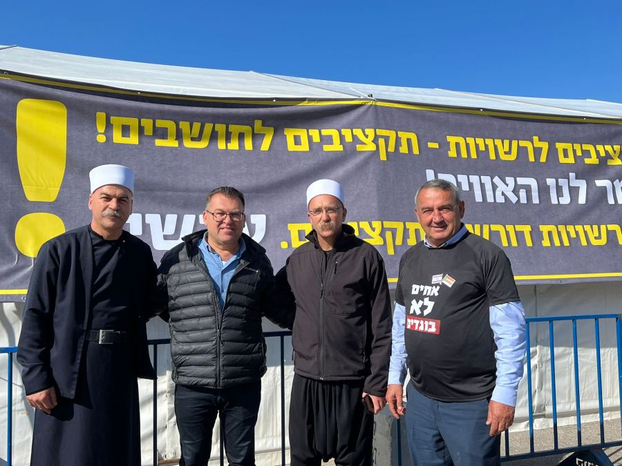 وقال جبر حمود رئيس منتدى رؤساء السلطات المحلية الدرزية والشركسية ورئيس مجلس ساجور المحلي:" يتواجد هناك كل رؤساء السلطات المحلية الدرزية وكل الطائفة الدرزية تقف موحدة خلف مركز السلطات المحلية في هذا النضال العادل الى ما لانهاية.هل تعرفون أن المجتمع الدرزي هو المجتمع الوحيد في البلاد انه في ميزانية الدولة 2024 تحظى بصفر ميزانيات من المكاتب الحكومية،هل تعرفون أن الحكومة التي أقرت تخصيص 540 مليون شيكل لعام 2023 وهي ذاتها التي صادقت على الميزانية قبل أيام خصصت صفر ميزانيات،نحن وصلنا هنا لنحارب ويجب علي التوضيح أن المجتمع الدرزي يعرف المحاربة وليس في ساحات المعارك".
