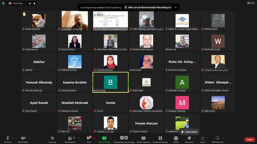 في جلسة نقاش على منصة محلية الرقمية منظمات المجتمع المدني تطالب بتضمين المساءلة في قضايا التعذيب والاخفاء القسري ضمن المحاور الأساسية في عملية بناء السلام في اليمن