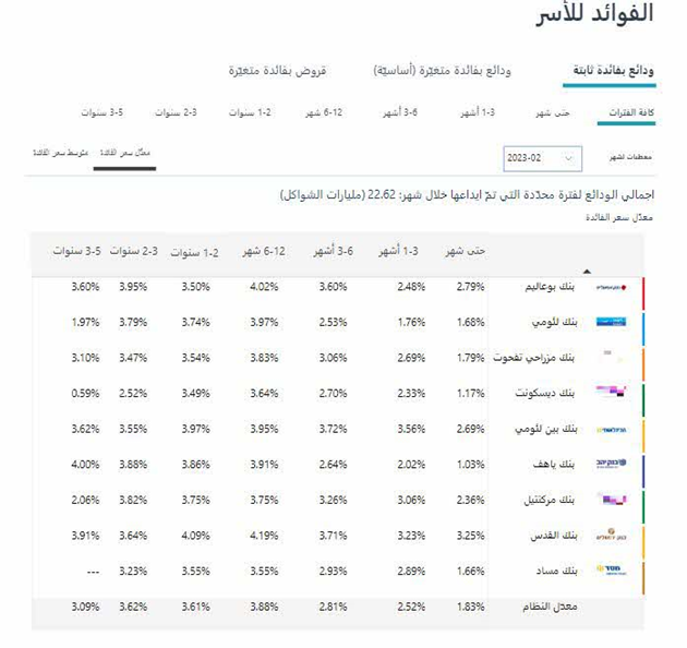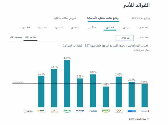 في رسالة المراقب على البنوك، السيد يائير أفيدان، بتاريخ 9/7/22 إلى مديري الجهاز المصرفي، ذكر المراقب أن الرقابة على البنوك تنوي العمل على نشر أسعار الفائدة للأسر التي يتم دفعها بالفعل من قبل كل مؤسّسة مصرفية مقابل الودائع بالشيكل، والتي تجبى فعليًّا عند تقديم الائتمان.