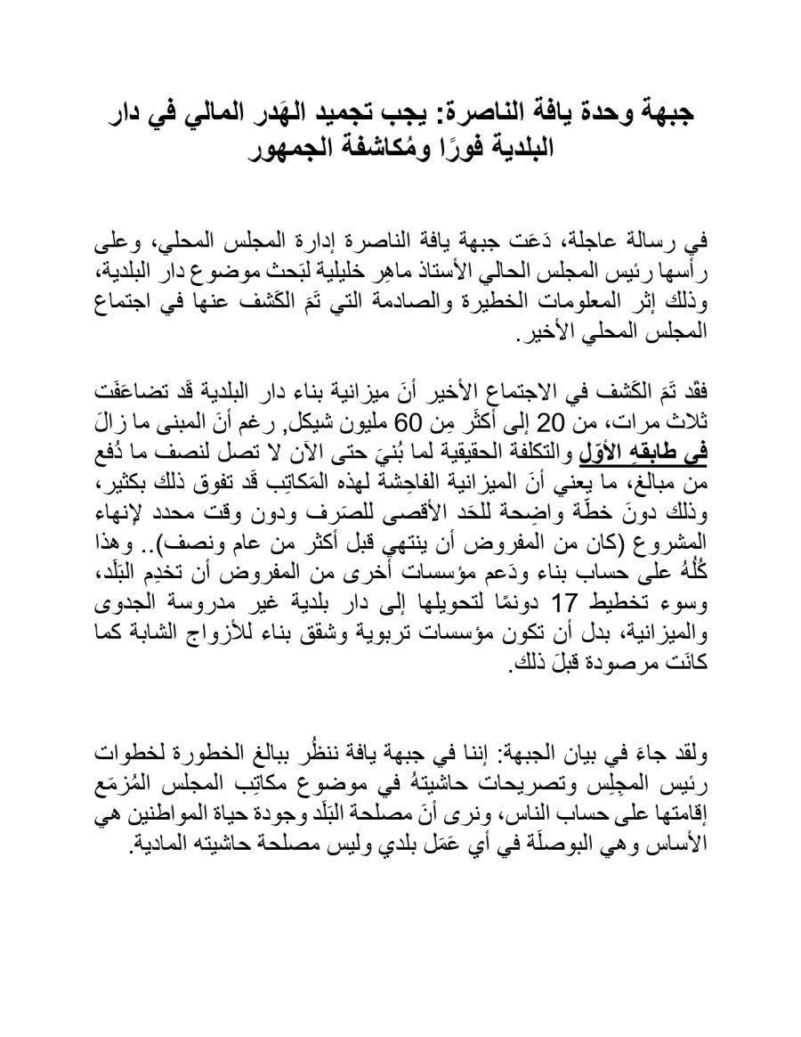 إهدار المال العام في بناء مبنى المجلس المحلي يافة الناصرةكنوز نت - يافة الناصرةإهدار المال العام في بناء مبنى المجلس المحلي يافة الناصرةكنوز نت - جبهة يافة تدعو إدارة المجلس المحلي التوقُف عَن بناء دار البلدية 10/04/2023 08:13 pm 838