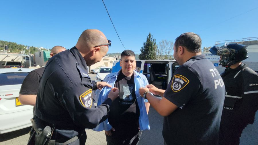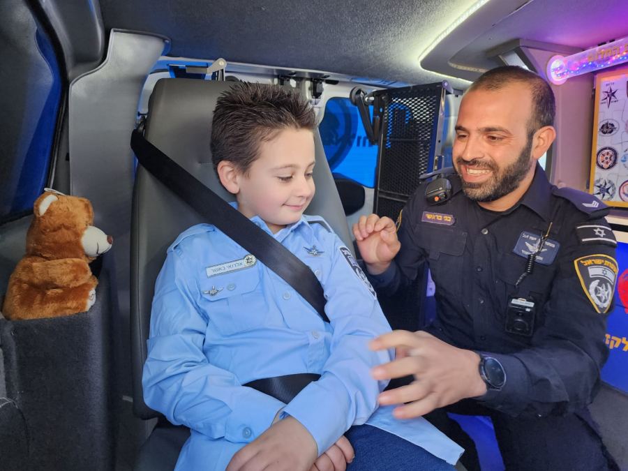 شرطة اسرائيل تقوم بنشاط جماهيري مؤثر ومميز لتجمع بين طفلين من ذوي الاحتياجات الخاصة احدهما من عين نقوبا والاخر من مفاسيرت تسيون وتحقق حلمهما ليصبحا شرطيان ليوم واحد