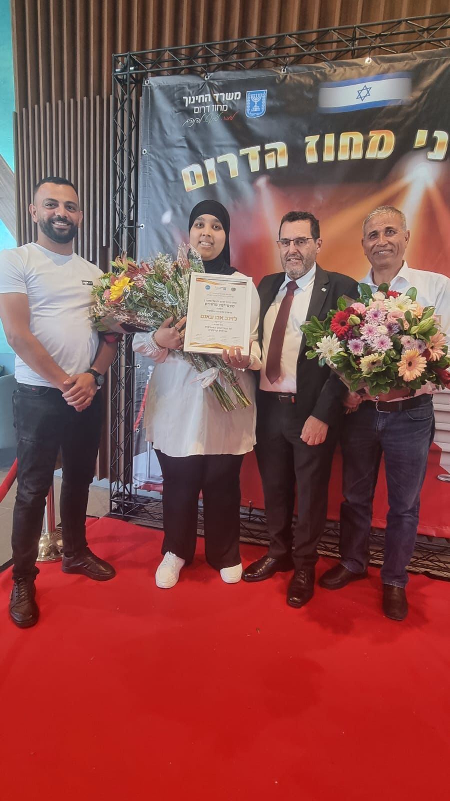 كما نتقّدم بكل الدعم لمدرسة الامل الاعدادية للتربية الخاصّة بادارة المربّي اسماعيل الزبارقة وطاقم المدرسة المعطاء، كما نبارك لمفتش التربية اللامنهجية السيّد طالب أبو حماد على حصوله على شهادة المفتّش التميّز بلواء الجنوب فله كل الاحترام والتقدير، وذلك وسط حفل مهيب بالمشاركة مع جماهير غفيرة، كل الشكر موجّه لادارة وطاقم المركز الجماهيري والاولياء الامور.