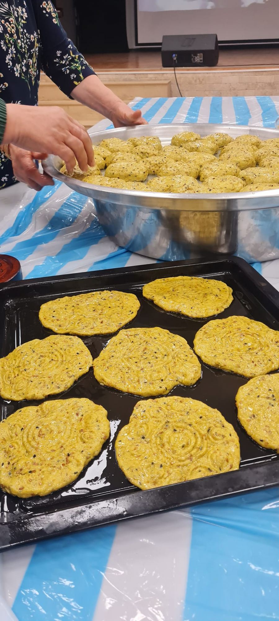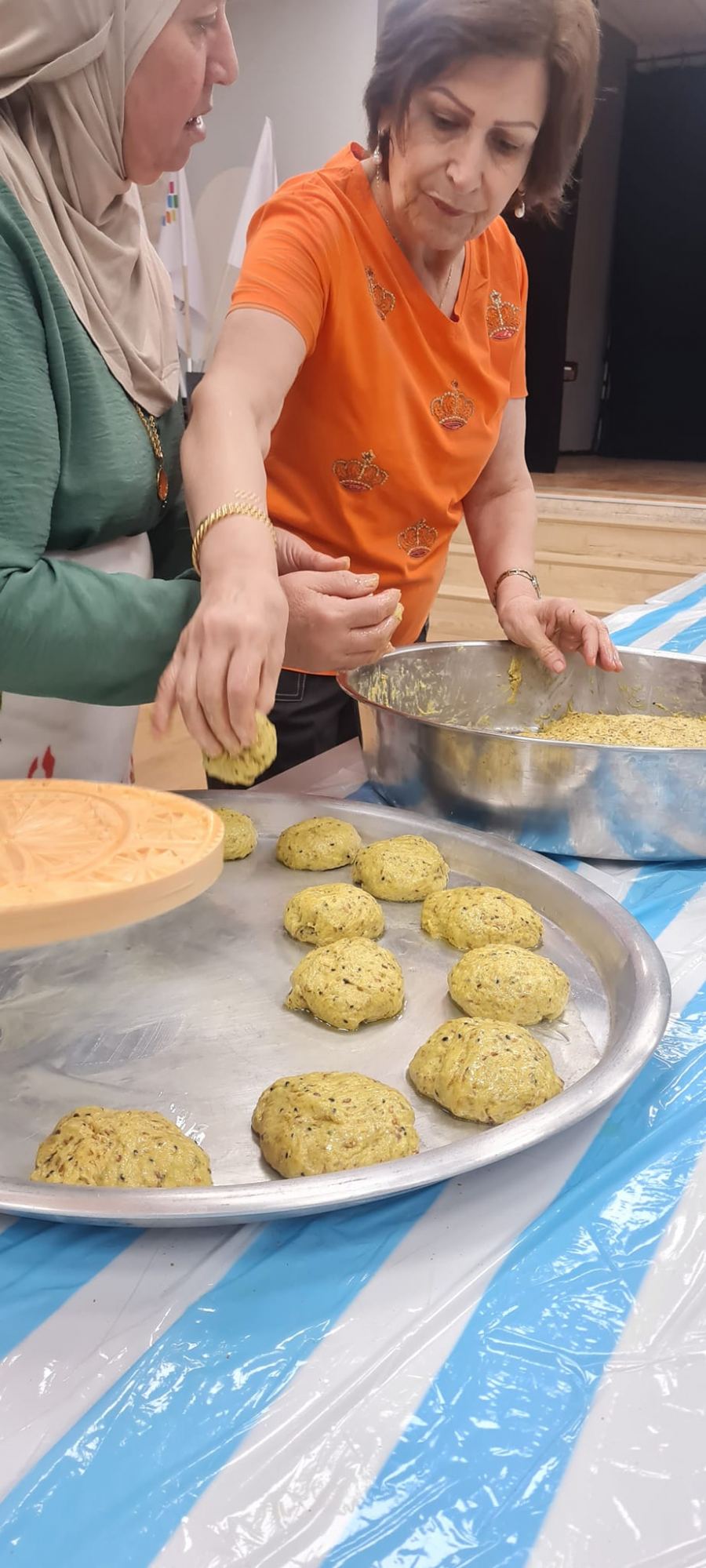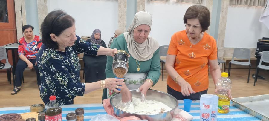 كنوز نت - ابو سنان - عممت الناطقة الإعلامية للمجتمع العربي بشركة المراكز الجماهيرية رانية مرجية البيان التالي : تحت عنوان تراثنا جزء من هويتنا وكبيراتنا يتقنوا كل عمل تم مؤخرا لقاء مميز ومبهج في النادي الجماهيري أبو سنان التي تديره بجدارة الدكتورة الهام الهيب فودي وتابعت مرجية بيانها وأكدت اللقاء كان اكثر من رائع حمل بطياته أجواء من المحبة والاخوة وسلام الله الذي يفوق كل شيء تبادلن النساء أطراف الحديث عن زمننا الجميل احلامهم آمالهم وقمن بصنع الكعك الأصفر الذي يتميّز بلونة ونكهته ورائحته .. التي ترد الروح من ناحية أخرى مديرة المركز الجماهيري د. الهام الهيب فودي