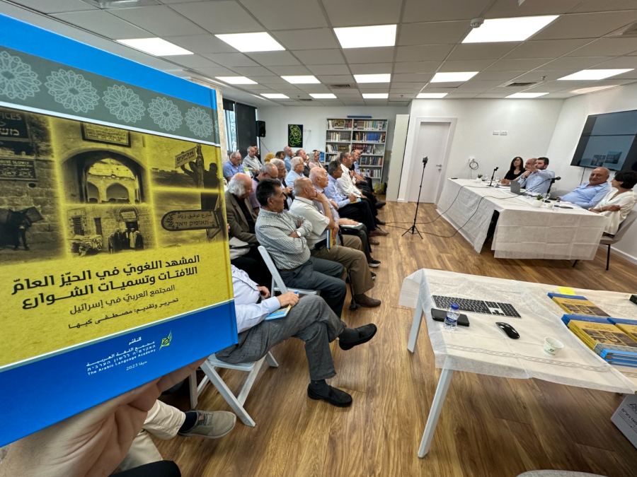 كنوز نت - نظّم مجمع اللغة العربية في مكاتبه في حيفا ندوة، عرض فيها نتائج بحثه "المشهد اللغويّ في الحيّز العامّ، اللافتات وتسميات الشوارع"، بالاعتماد على عيّنات من قرى ومدن في المجتمع العربي في إسرائيل. افتتحت الندوة مُديرة المجمع د. أمينة حسن، وتحدّث كُل من رئيس طاقم البحث البروفيسور مصطفى كبها رئيس المجمع، بالإضافة إلى أعضاء الطاقم، د. ميسون إرشيد شحادة والأستاذ حسين منصور والأستاذ حسين كنانة.