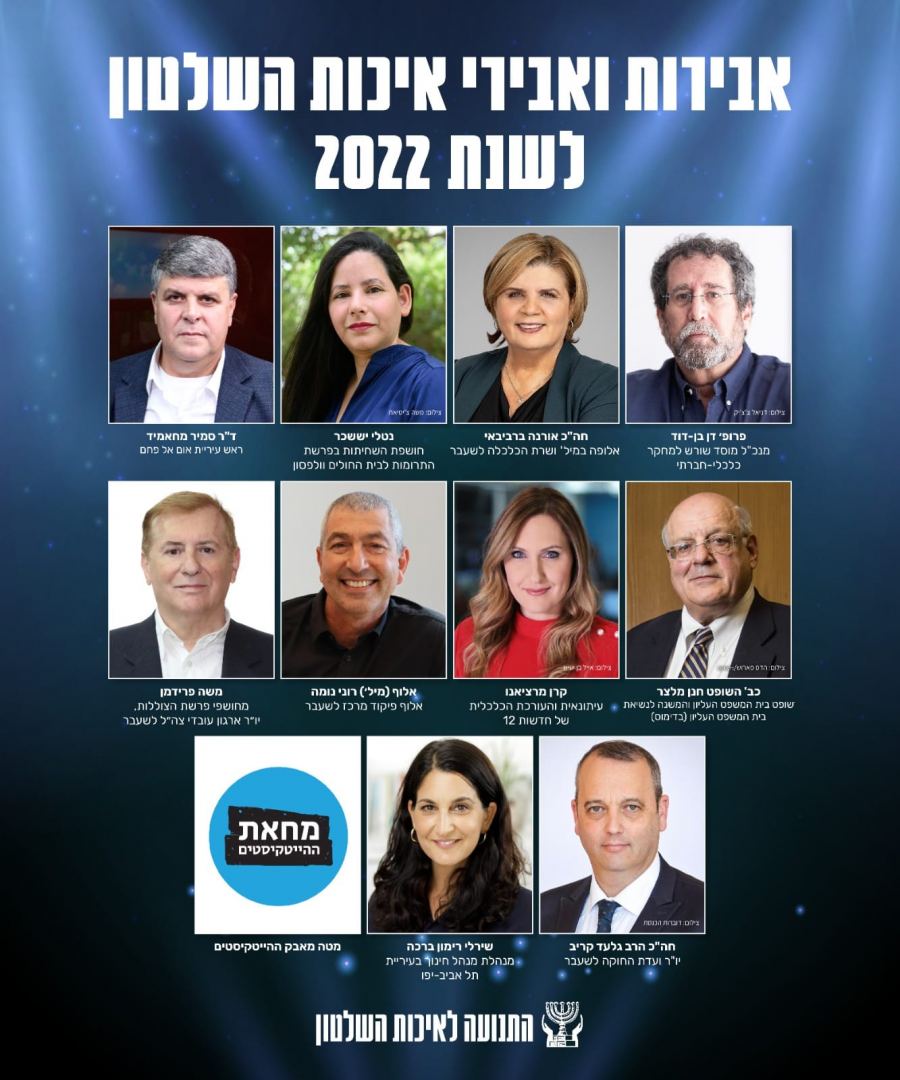كنوز نت - أعلن ظهر اليوم الأحد الموافق 4.6.2023 عن الشخصيات الفائزة بجائزة الحركة لجودة الحكم في البلاد (התנועה לאיכות השלטון) لسنة 2022، والتي تضم عشر شخصيات في مجالات مختلفة. وقد فاز بجائزة فارس الحكم المحلي (אביר שלטון מקומי) وعن كافة السلطات المحلية، عربية ويهودية، رئيس بلدية ام الفحم د. سمير صبحي، وهو الشخصية العربية الوحيدة من بين الفائزين في المجالات الأخرى أيضا.