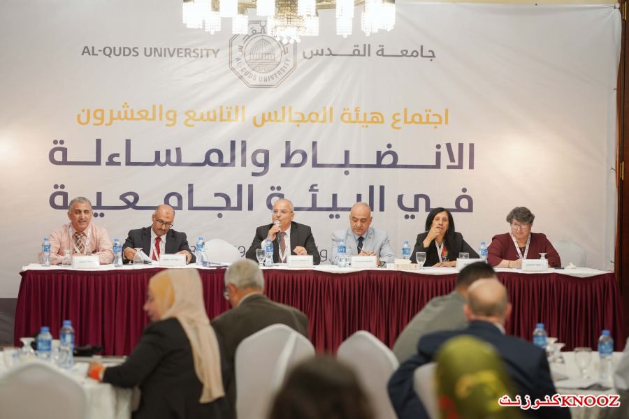 كنوز نت - ياسمين الخطيب : افتتحت جامعة القدس اجتماع هيئة المجالس التاسع والعشرين تحت عنوان "الانضباط والمساءلة في البيئة الجامعية" في مدينة أريحا، وينعقد على مدار يومين متتاليين في مواضيع الحوكمة والحاكمية الرشيدة والحرية والقيادة الأكاديمية الجامعية، والانضباط الوظيفي والسلوكي الطلابي، تأتي في أوراق علمية لباحثين وأكاديميين وطلبة بحضور ثلة من طاقم الجامعة وكوادرها.