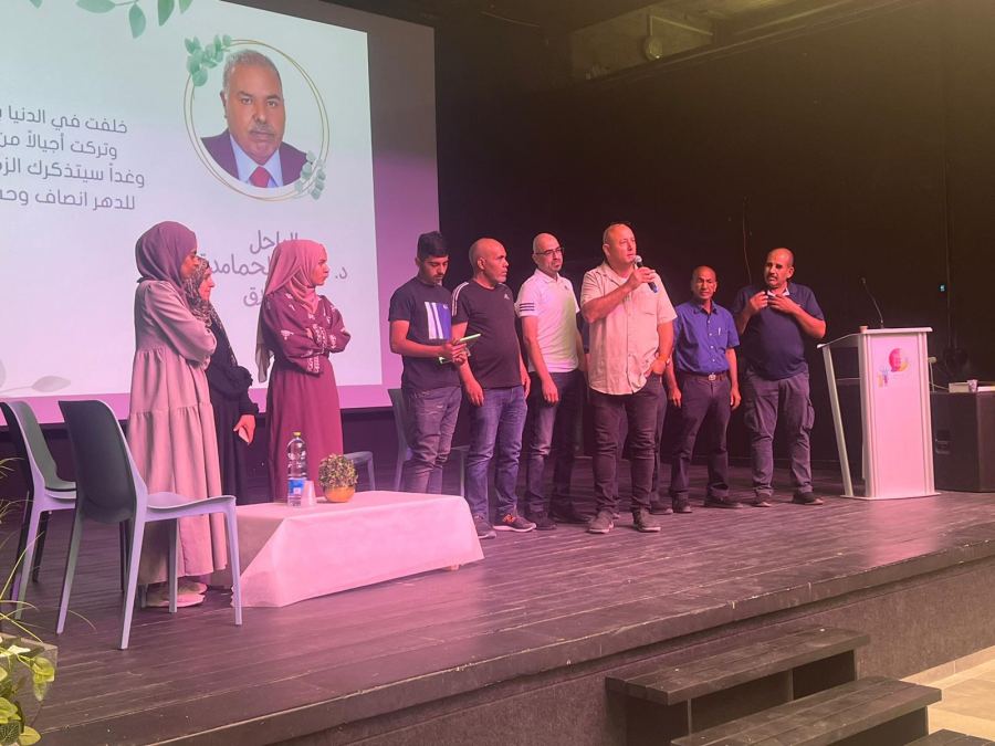 وشهد الحفل مشاركة واسعة من أصدقاء ومحبي وتلامذة الدكتور الراحل، بالإضافة إلى عدد من معلمي ومديري المدارس المحلية بالقرية والشخصيات السياسية والاجتماعية والأكاديمية، فضلا عن نائب رئيس المجلس المحلي شقيب السلام السيد سويلم العمرني والذي ألقى بدوره كلمة مؤثرة عن مسيرة الدكتور محمد الحمامدة أستعرض فيها مسيرة الراحل في سلك التعليم ومبادراته الثقافية التي تركت آثارها حتى يومنا هذا