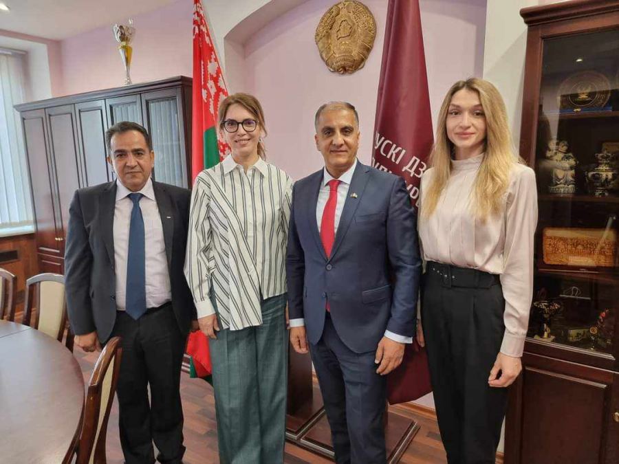 كنوز نت - محمد البريم - اجتمع سفير فلسطين لدى جمهورية بيلاروس د.أحمد المذبوح بعميدة جامعة الثقافة والفنون البيلاروسية السيدة نتاليا فلاديمرفنا كارتشيفسكايا وذلك في مقر الجامعة.