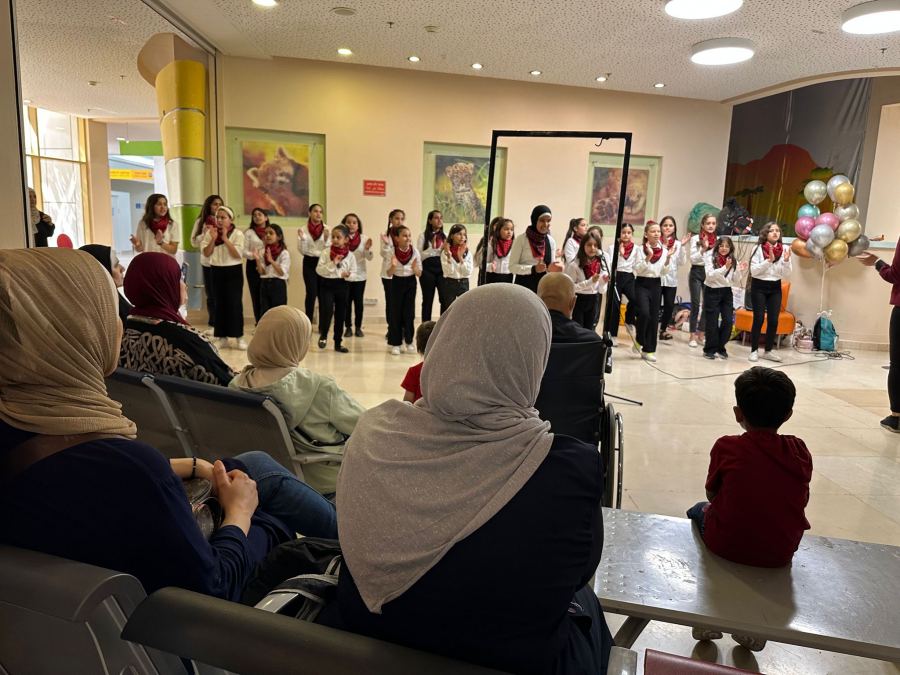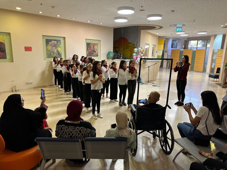 كنوز نت - قدمت جوقة مدرسة ابن رشد من مدينة الطيبة عرضًا موسيقياً رائعاً بقيادة المربية حنين مصاروة، وذلك في مشفى تل هشومير بهدف رسم بسمة على وجوه الاطفال والكبار من المرضى الفلسطينيين، من الضفة وغزة، المتعالجين في الاقسام المختلفة وخصوصاً قسم الأورام.