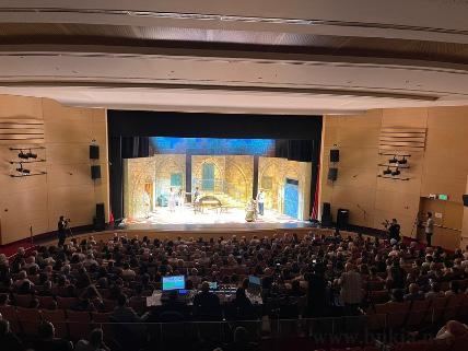 بأجواء كرنفالية ووسط حضور جماهيري من مدينة الطيرة والمدن المجاورة بادر المركز الجماهيري الطيرة بدعم ورعاية بلدية الطيرة والاشكول هبايس مساء الامس الاثنين بعرض المسرحية الرائعة "كافيار وعدس” باكورة إنتاجات المسرح العربي – أم الفحم وذلك على خشبة مسرح الاشكول بايس في مدينة الطيرة ، حيث كان الجمهور على موعد مع الإبداع المتجدد والفن الراق والأداء المتميز في عمل كوميدي ناقد لامس قلوب الحضور بعمقه تارة، وأطلق ضحكاتهم وتصفيقهم تارة أخرى بمواقفه الساخرة ولكن المعبرة، لتمضي المسرحية مشهد تلو مشهد يخطف الأبصار والأسماع، من بدايته حتى نهايته، والعين لا تكاد تخطئ في أي مشهد من المشاهد مستوى التألق والإبداع بالتمثيل والإضاءة والصوت والديكور، فكان فعلاً عملاً فنياً متكاملاً فارقاً في تاريخ الإنتاج المسرحي على مستوى المسرح العربي في البلاد.