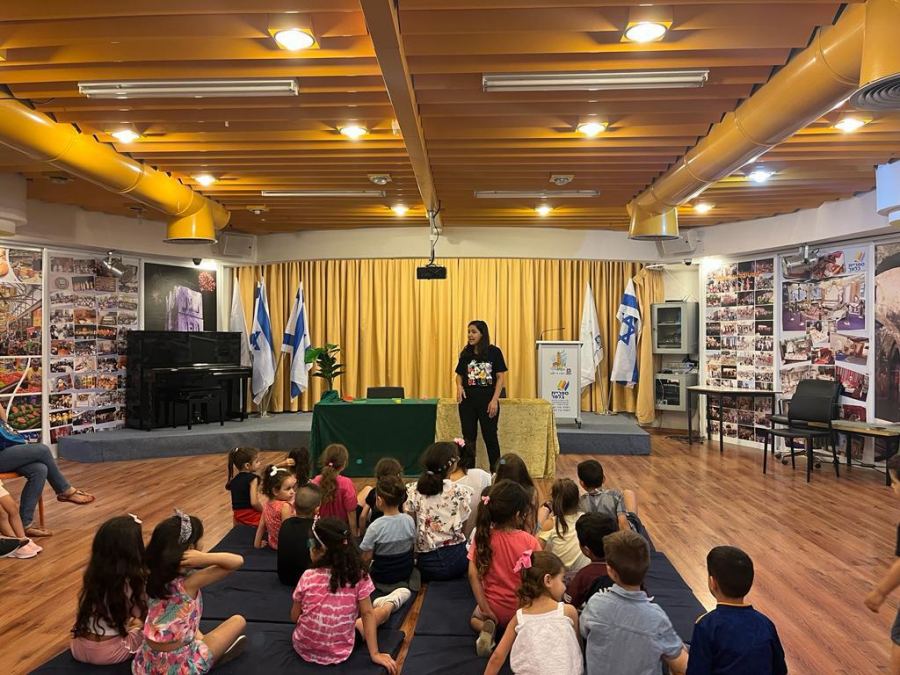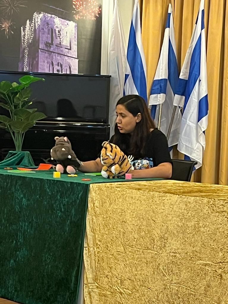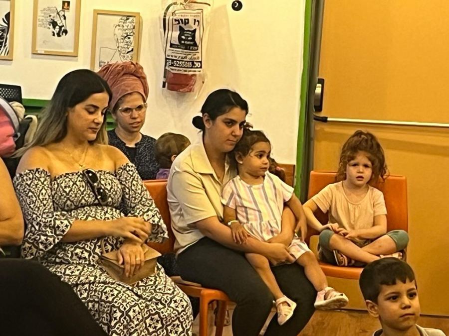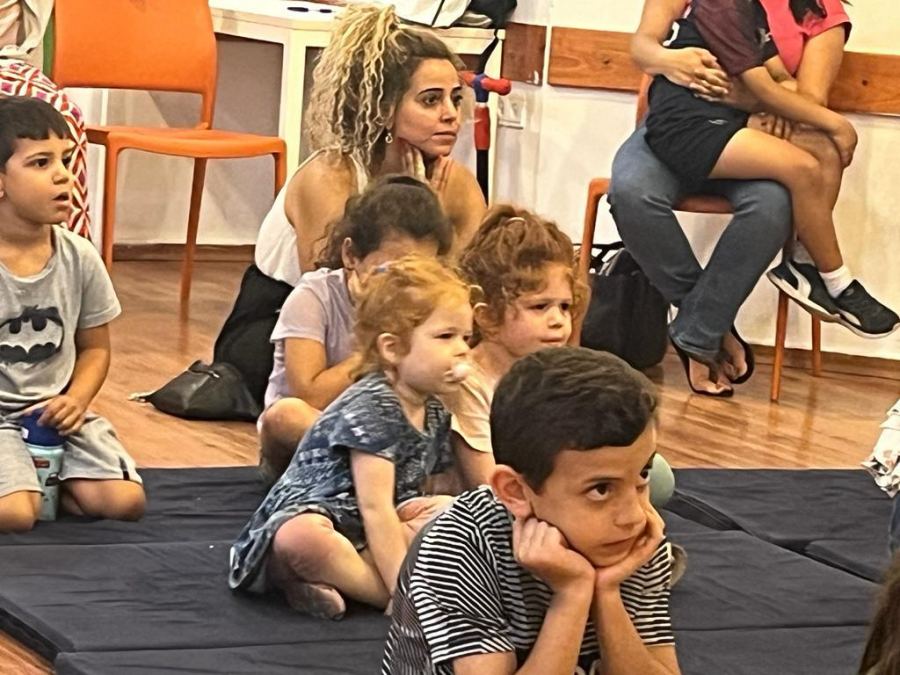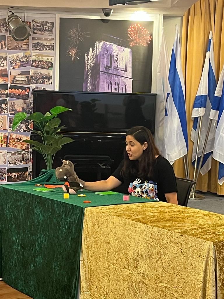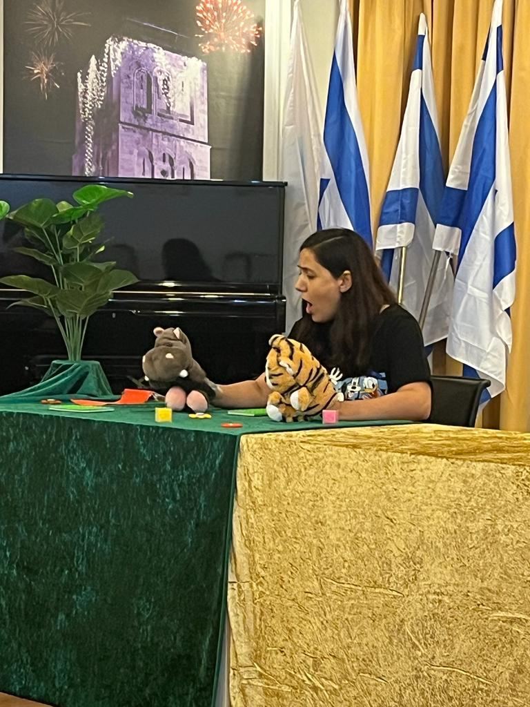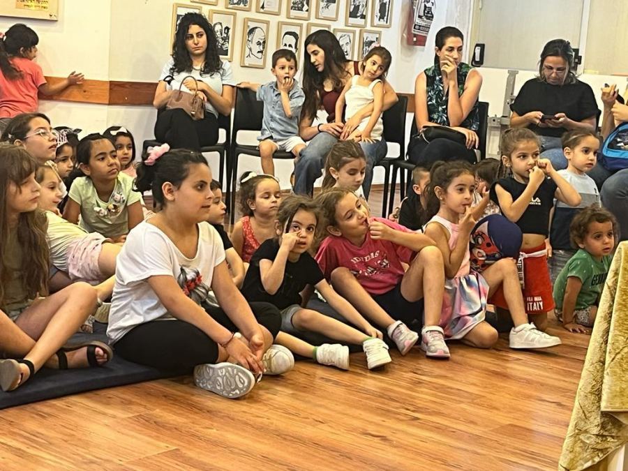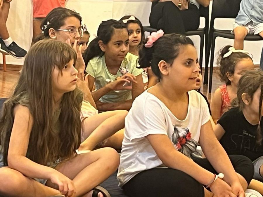 عشرات الأطفال في مسرح للدمى مع الحكواتية ماريا زعرور مرجية في مكتبة بلفر الرملة