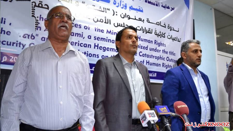 كنوز نت - صنعاء_رياض الزواحي _سبأ - نظمّت وزارة حقوق الإنسان، امس ندوة بعنوان "الفيتو والهيمنة الأمريكيَّة.. تداعيات كارثية لقرارات مجلس الأمن الدولي على واقع حقوق الإنسان".