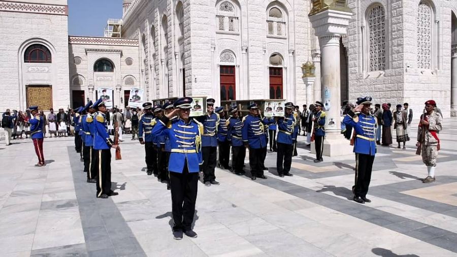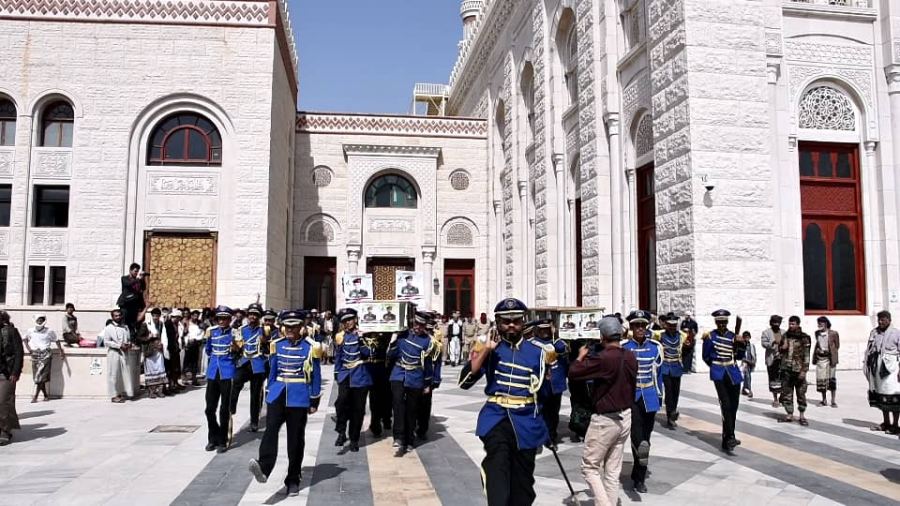 كنوز نت - اليمن - شُيع اليوم بصنعاء في موكب جنائزي مهيب جثمانا شهيدي الوطن والقوات المسلحة الرائد أحمد عبدالله أحمد الحمزة والرائد أبوبكر علي سالم المحضار، اللذين استشهدا وهما يؤديان واجبهما في الدفاع عن السيادة الوطنية.
