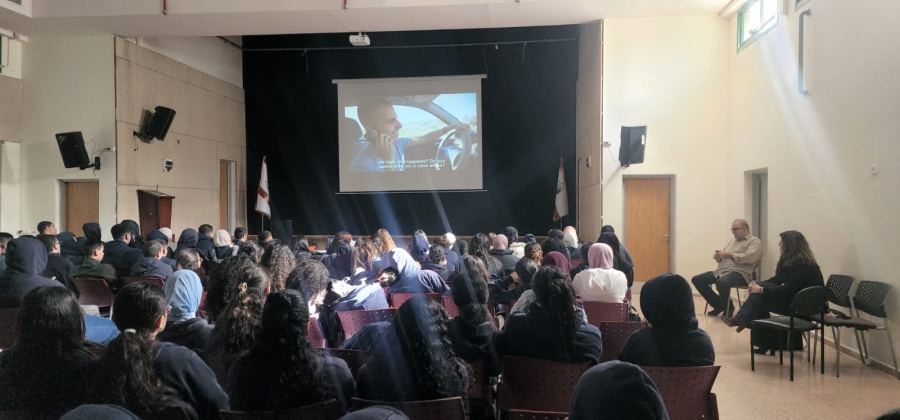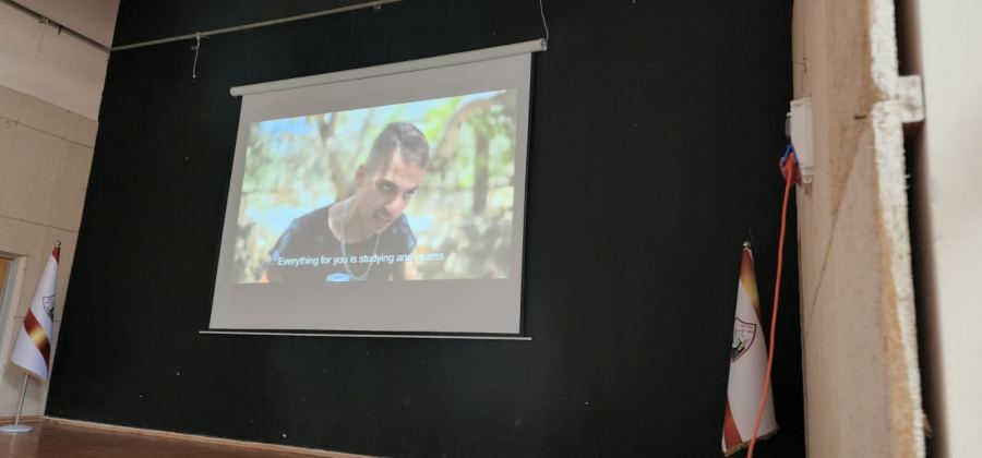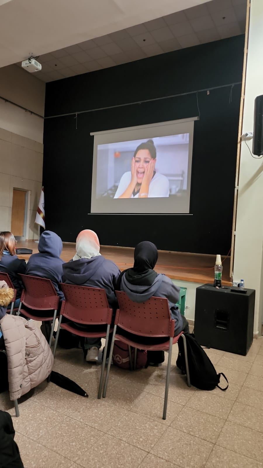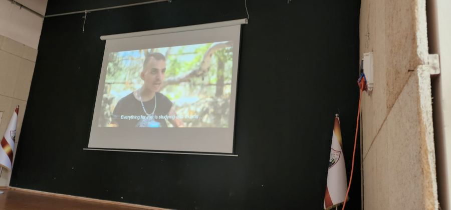 ولمدة ساعة من الزمن شاهد الطلاب فيلم "السيلفي الاخير" وهو من انتاج مؤسسة ألفية الحواس ويندد بظاهرة السياقة تحت تأثير الكحول والعنف على الشوارع، ويتمحور الفيلم حول قصة مجموعة من الشباب والذين يقومون بتصرفات اعتباطية اثناء السياقة تنتهي بمقتل احدهم وفقدان القدرة الحركية لدى اخر ومشاكل نفسية لدى زميل اخر نجا جسديا من الحادث. وشمل العرض نقاشا ومداخلات بعد الفيلم بمشاركة الطلاب الذين اعربوا عن إنفعالهم وتأثرهم من احداث الفيلم.
