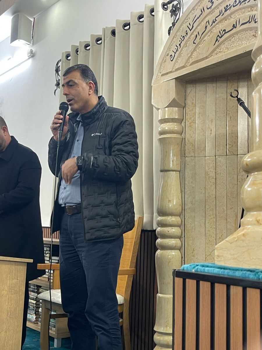 وذكر الشيخ في كلمته دور ملتقى الأئمة والدعاة وعمله في خدمة المجتمع في المنطقة، الشاب محمد عرسان حجاجرة شنّف الآذان بإنشاد مبارك بصوته الشجي، الشيخ سالم عيادات قدم كلمة ترحيبية وعرج على بعض معاني هذه الذكرى التي جاءت في فترة صعبة جدا على النبي صلى الله عليه وسلم بعد موت عمه أبو طالب وزوجته خديجة، ومحاصرة بني هاشم في شعب أبي طالب فجاءت هذه الرحلة لتسري عن النبي صلى الله عليه وتسليه في الكرب الشديد الذي مر به،