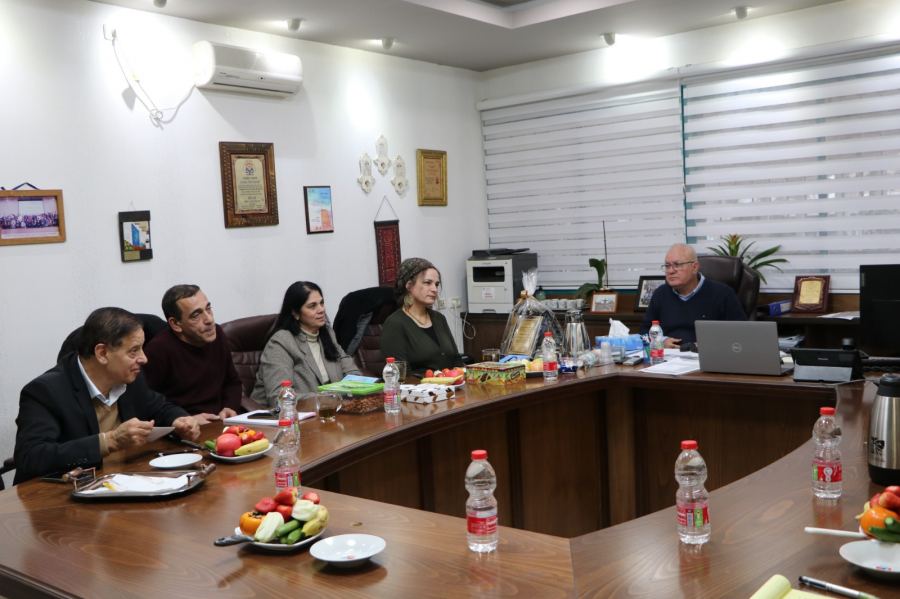 بداية، عُقدت جلسة تعارف شارك فيها الى جانب نزيه بدارنة وب. فيصل عزايزة، كل من عميدة الكلّية، بروفيسور فادية ناصر أبو الهيجاء، ونائب رئيس الكلية للبحث العلمي والتخطيط الاستراتيجي، بروفيسور ياسر عواد. وخلال الجلسة استعرض ب. عزايزة أمام الضيوف الرؤية المستقبلية الجديدة التي تبنتها الكلية، والمشاريع والخطوات التي بدأت بتنفيذها بهدف تعزيز وتطوير مسارها الأكاديمي والعلمي والبحثي، فيما قدّم بروفيسور ياسر عوّاد مداخلة حول المشاريع الدوليّة التي تشارك فيها الكلّية.