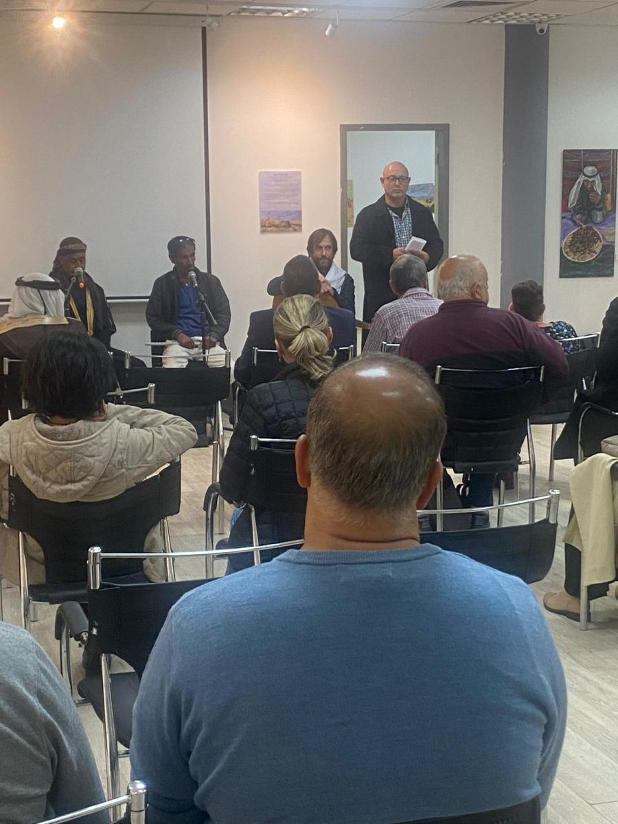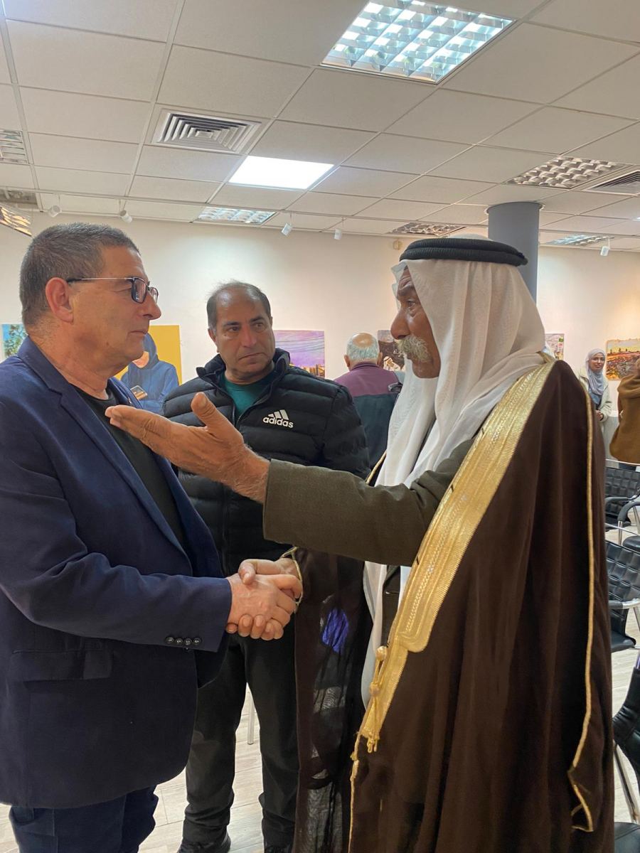على الانغام الموسيقية البدوية لفرقة شرقي افتتح معرض الفنون بالمركز الجماهيري وجاء تحت عنوان "القرى الغير معترف بها" وهو عبارة عن أعمال فنية رسومات وصور من أيدي المبدع الفنان ديفيد مندل