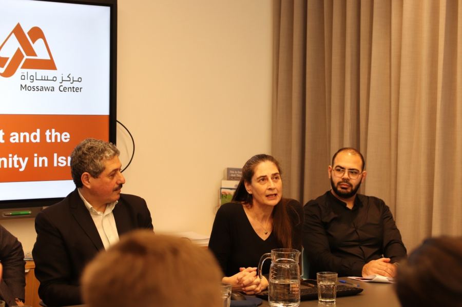 السيدة سهى سلمان موسى، المديرة التنفيذية لمركز مساواة، شرحت عن الجهود التي يبذلها مركز مساواة في المرافعة لتحصيل حقوق المجتمع العربي من الوزارات الحكومية وبالتعاون مع أعضاء الكنيست ورؤساء السلطات العربية لتحصيل الحقوق الاقتصادية والاجتماعية للمجتمع العربي في البلاد.