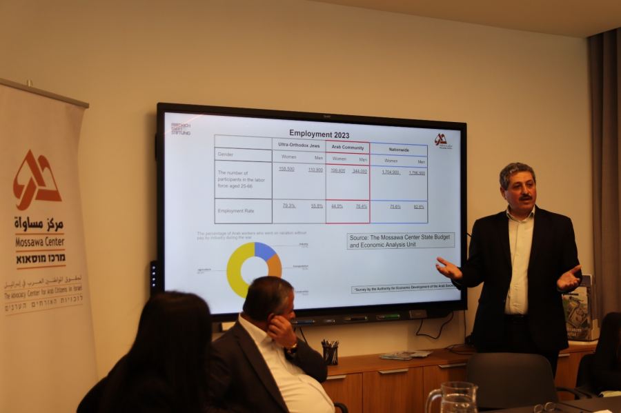 واستعرض جعفر فرح، مدير مركز مساواة، ومحمد أبو الليل، منسق التطوير الاقتصادي تحليل ميزانية الدولة، وعرضوا معطيات عن التقليصات المتوقعة في ميزانية 2024 والتداعيات الخطيرة لهذه التقليصات على جميع جوانب الحياة في المجتمع العربي وعلى الاقتصاد بشكل عام.