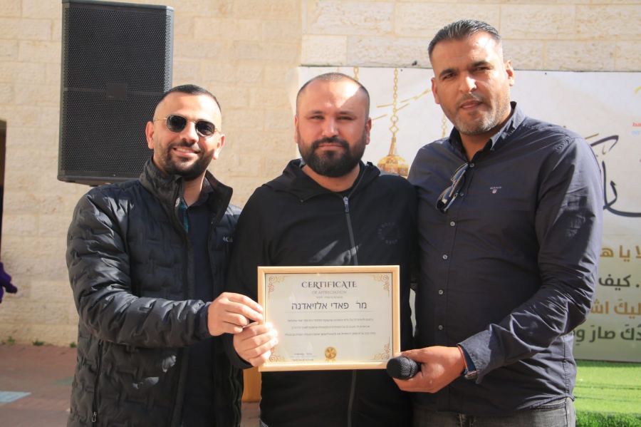 وفي ختام الحفل، قام السيد امير النصاصرة بتوزيع شهادة تقدير كل من السيد فادي الزيادنة والأخ كايد أبو الطيف وطاقمه، مدير مسرح اليمامة رهط، سامي الفراحين، مدير مشروع مجتمع متاح، ربيع عمر وطاقم قسم القدرات الخاصة على أهمية دور المؤسسات الثقافية والتربوية في إحياء الفعاليات التي تعزز الترابط المجتمعي وتنمي المواهب الشبابية.