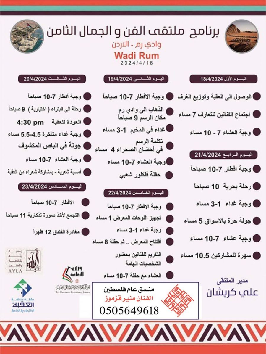 وقال قزموز “اولا اشكر مدير جمعية “آيلة” في العقبة السيد علي كريشان على هذا الاختيار والتعيين وسأعمل كل جهدي على انجاح ودعم هذا المهرجان الدولي الذي سيقام الشهر القادم”.