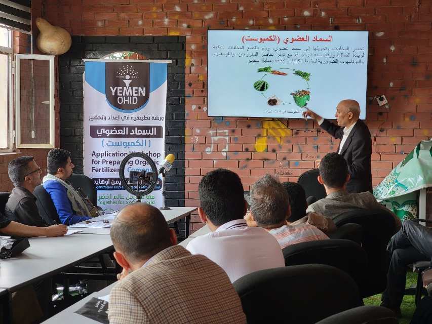 كنوز نت - صنعاء / خاص - اقامت منظمة يمن اوهايد بالتنسيق مع فرع المجلس الأعلى لتنسيق الشؤون الإنسانية بأمانة العاصمة ، وبتمويل من شركة يمن موبايل ، الورشة التطبيقية في إعداد وتحضير سماد "الكمبوست" العضوي.