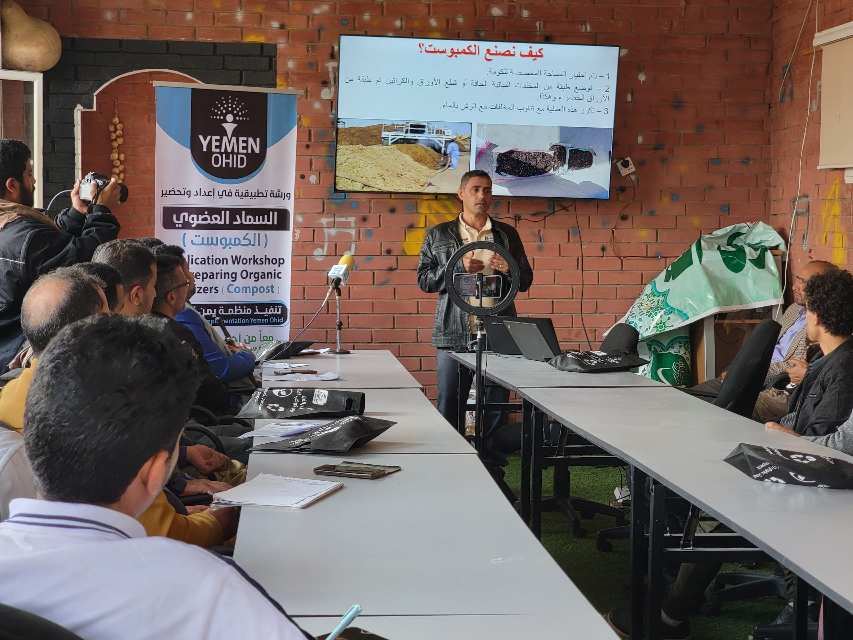 تحضير السماد العضوي الكمبوست في ورشة عمل تطبيقية لمنظمة يمن اوهايد بصنعاء