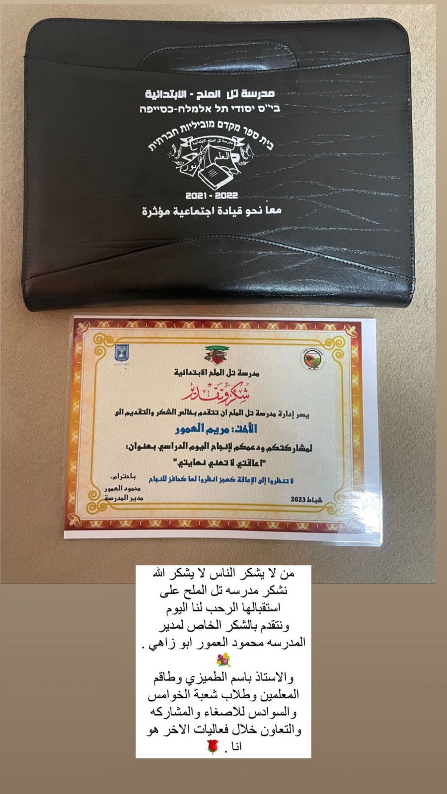 وقالت مريم العمور - مركزة المجتمع المتاح اشكر مدير المركز الجماهيرية נדר والعاملة الاجتماعية شروق ابو طه على مرافقتها لي في جميع الفعاليات