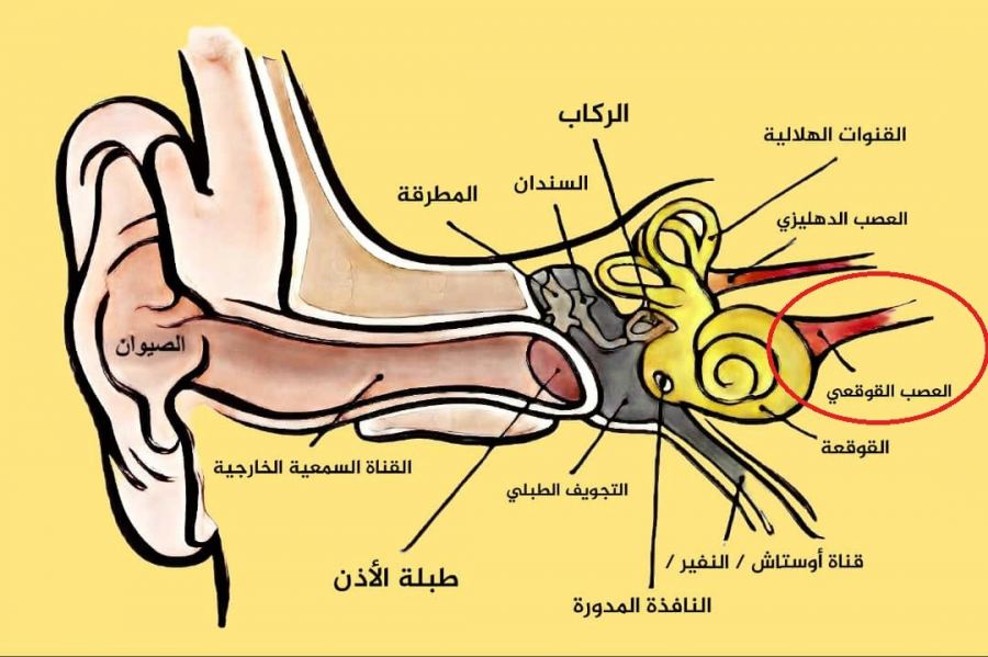 تُنقَل حاسَّة السمع بواسطة العصب الثامن والذي يُسمَّى بالعصب السمعي أو العصب الدهليزي القوقعي Vestibulocochlear nerve (VII)