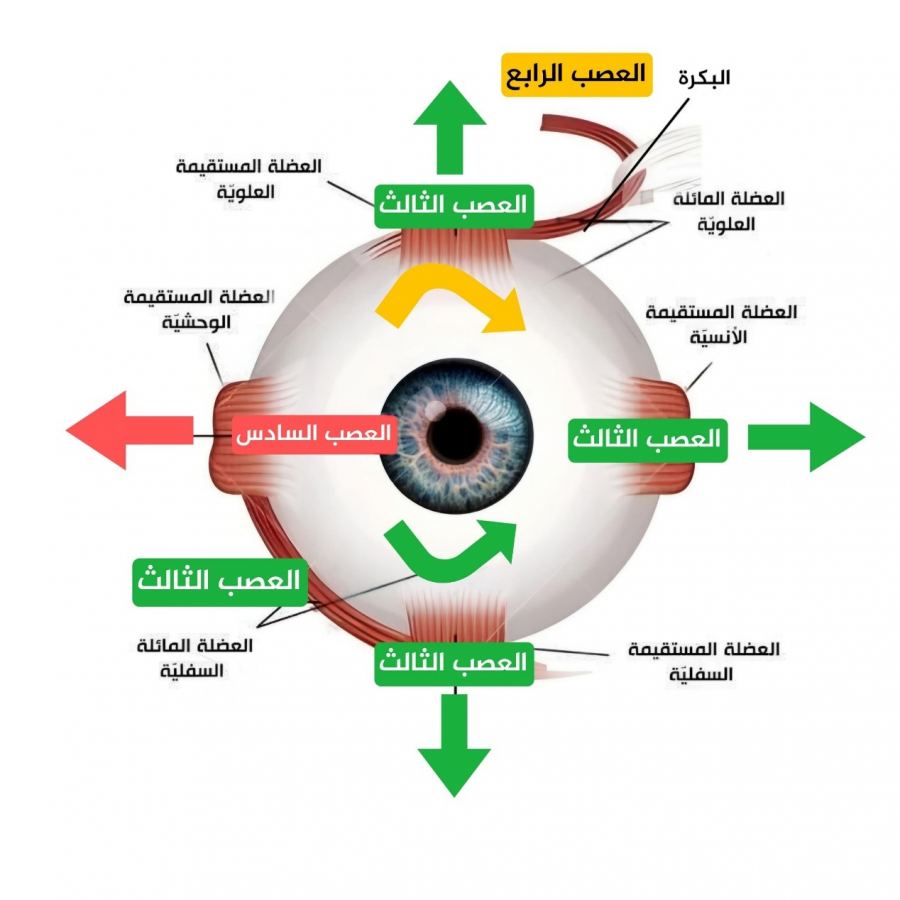 يتحكم بأربعة عضلات مسؤولة عن تحريك كرة العين: أُفقيًا (نحو الأنف وبعيدًا عنه)، عموديًا (إلى الأعلى والأسفل)، دائريًا (باتجاه عقارب الساعة أو بعكسها)