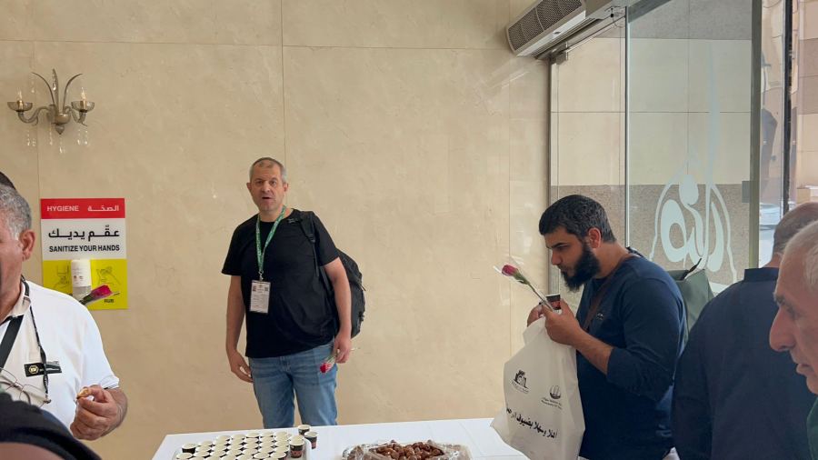ويوجه الحجاج ، كل التحية لاقربائهم في المدينة وفي الداخل الفلسطيني، ويطمئنوهم بالدعاء.