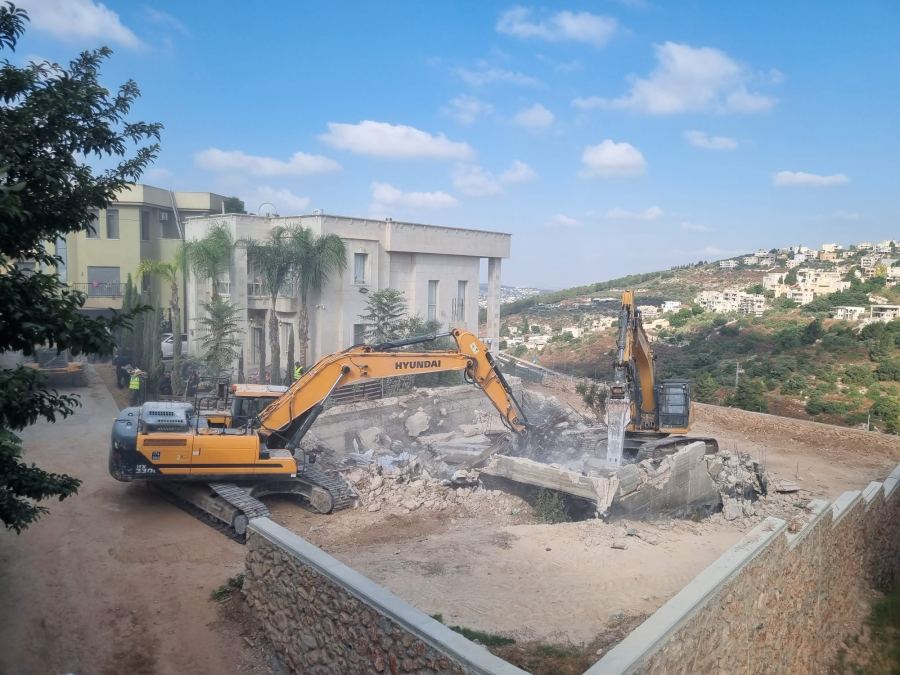 شرطة الساحل تساعد في تنفيذ أمر هدم مبنى سكني في #ام_الفحم تم بناؤه خلافًا للقانون