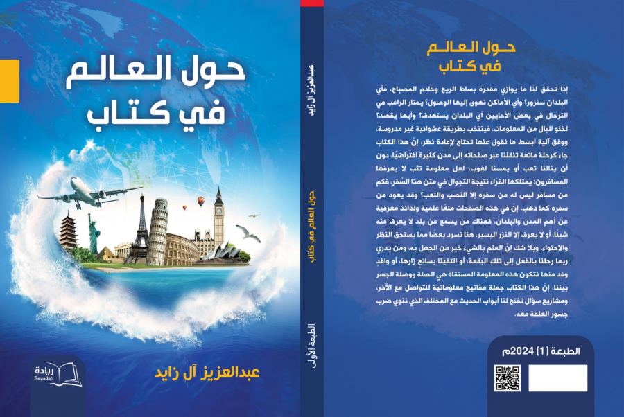 كنوز نت - صدر حديثًا عن دار ريادة للنشر والتوزيع، بمدينة جدة، الإصدار الـ 15 للأديب الأستاذ عبدالعزيز آل زايد، كتاب "حول العالم في كتاب". يدشن الأديب آل زايد في إصداره الـ 15 فكرة (السفر عبر قرطاس)، فيقول في طيات صفحاته: "كم من مسافر ليس له من سفره إلا النصب والتعب؟، وقد يعود من سفره كما ذهب". يُعَرّج المؤلف بعدها بقول: "إنّ هذا الكتاب جاء كرحلة ماتعة تنقلنا عبر صفحاته إلى مدن كثيرة افتراضيًّا، دون أن ينالنا تعب أو يمسنا لغوب". الكتاب عبارة عن رحلة على مَتْنِ قرطاس.