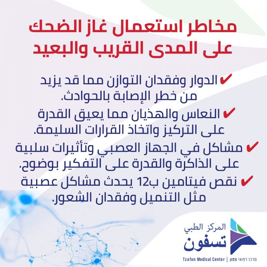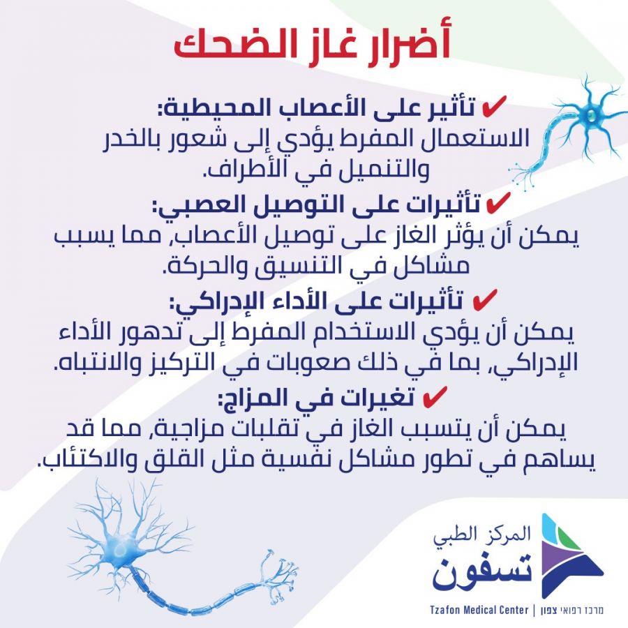غاز الضحك، المعروف أيضاً باسم أكسيد النيتروس، هو غاز يتمتع بخصائص مخدرة ويستخدم في بعض الحالات الطبية والتخدير. في السنوات الأخيرة، زاد استخدام غاز الضحك بين الشباب كبديل للمخدرات، مما يثير القلق بشأن تأثيره على الصحة النفسية والجسدية، ويجب التعامل مع هذه الظاهرة بحذر شديد خاصة وأننا بتنا نلمس ارتفاعاً وزيادة في عدد الحالات التي تستدعي تلقي العلاج. هذا ما يؤكده د. نزار حوراني، مدير قسم الاعصاب والجلطات الدماغية في المركز الطبي تسفون، حول انتشار هذه الظاهرة المقلقة، ويضيف: "غالباً ما يحصل الشباب على غاز الضحك بطرق غير قانونية وغير آمنة، مما يعرضهم لمخاطر صحية كبيرة، خاصة في ظل سهولة الحصول عليه. في بعض الأحيان، يتم بيع عبوات غاز الضحك كجزء من أدوات ومكملات الطهي والحلويات مثل "كريمات الخفق" أو "أنابيب النيتروس". تستخدم هذه العبوات عادةً في تحضير الكريمة المخفوقة، لكن يتم إساءة استخدامها لاستنشاق الغاز. كذلك قد يكون الغاز متاحاً في متاجر بيع الأدوات الطبية، حيث يُستخدم بشكل قانوني في بعض الحالات الطبية والتخدير، كما توجد العديد من المتاجر الإلكترونية التي تبيع غاز الضحك دون قيود مشددة، مما يسهل على الشباب شراؤه دون التحقق من السن أو الغرض من الاستخدام. كذلك يمكن الحصول على غاز الضحك من السوق السوداء أو من خلال منصات البيع غير القانونية عبر الإنترنت، ويتم تبادل الغاز بين الأصدقاء وإساءة استخدامه ونقله من شخص إلى آخر بطريقة غير قانونية. مهما اختلفت طريقة الحصول عليه، تكون التأثيرات السلبية على الأعصاب والمخ بالغة بالإضافة إلى باقي الأضرار الصحية والنفسية، والتي تستدعي اتخاذ تدابير وقائية وعلاجية مناسبة. التثقيف والتوعية بشأن المخاطر المحتملة واستخدام أساليب علاجية فعالة يمكن أن تساهم في حماية الشباب. مؤخرا وصلتنا إلى المركز الطبي تسفون حالات لشبان وشابات عانوا من انعكاسات خطيرة بعد استعمالهم غاز الضحك، ونجحنا في تقديم العلاج اللازم لهم، ونحمد الله على ذلك لكن يجب أن نتذكر المقولة "مش كل مرة بتسلم الجرة".